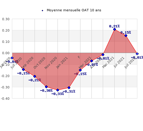 Moyenne algébrique mensuelle des taux de rendement des OAT 10 ans.