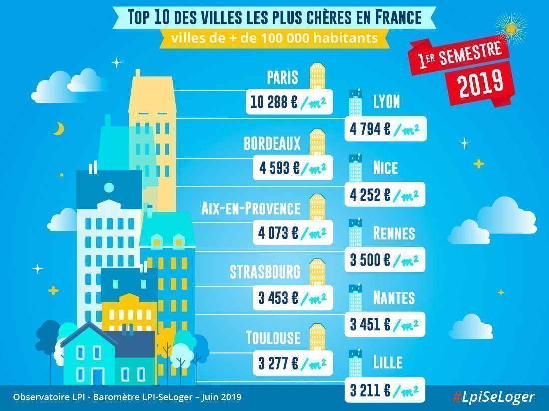Top 10 des villes les plus chères de France au 1er semestre 2019